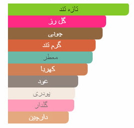 ![]() گل رز دمشقی | ![]() چای | ![]() شمعدانی | ![]() یاسمن |
