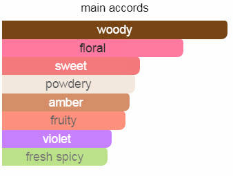 نت‌های پایه آن چوب ماهون، کهربا، بنفشه سیاه و خامه زده شده است.