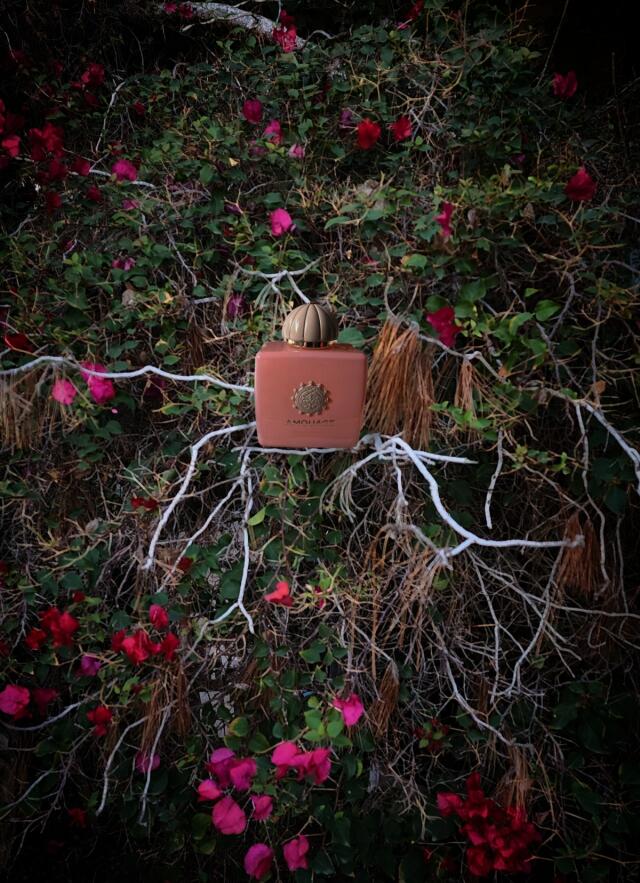قدرت ظریف زنانگی: برج عاجی که در تکههای ابر پیچیده شده، مههای شبنمآلود گلابی شکننده، شیر بادام جذاب و دانههای کندر، خطوط کلی یک بهشت رویایی را ترسیم میکنند. شاهزاده خانمی شما را به درون دعوت میکند و راه را به باغی سرسبز هدایت میکند، جایی که شکوفههای اسمانتوس عطر دلانگیز زردآلوی خود را میپراکنند. فوارهای در مرکز میدرخشد، لبه مرمری آن پوشیده از گلهای رز قرمز است که عطر هیجان انگیزشان با رایحه نخهای زعفران چرمی که روی زمین پخش شدهاند، تلاقی میکند. زن از میان پردههای یاس، شرجی و خسته، قدم میزند و با خود عطر وانیل تیره و چوب صندل پوستمانند، لابدانوم کهربایی و نشانههایی از اورینتالگریس باشکوه را به همراه دارد: او میپرسد: «تو کیستی؟» و تو احساس دیده شدن میکنی. تفسیری مسحورکننده و بدیع از سهگانه رز، کندر و اورینتالگریس آمواژ، مانند یک شعر خوانده میشود، بوی آغوش میدهد و مانند کلامی از حکمت است.